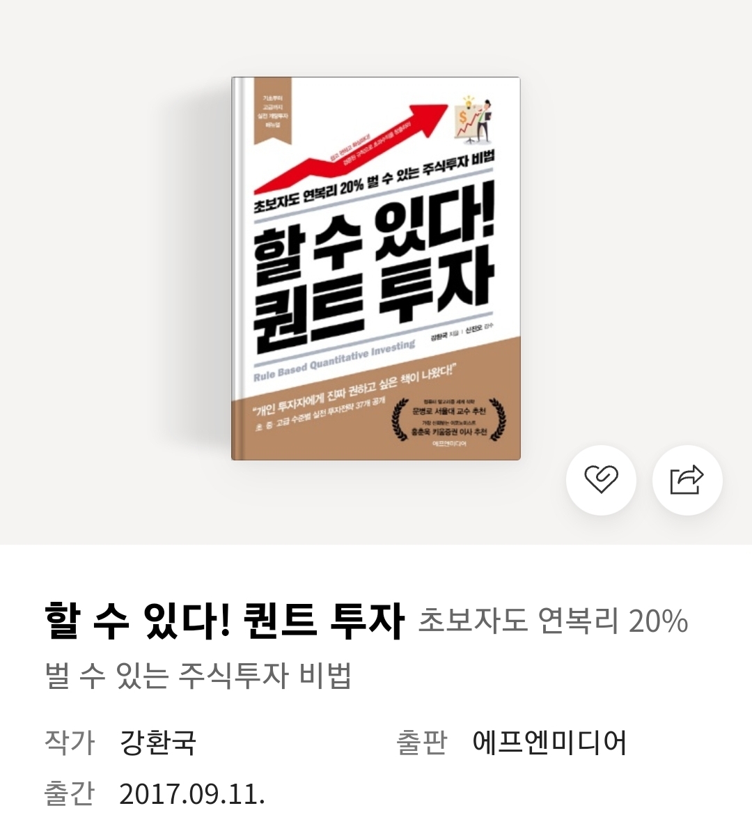하면 된다! 퀀트 투자는 할 수 있다! 퀀트 투자의 개정판과 같은 책입니다. 비슷한 내용의 책이라 사실 둘 중 한권만 보셔도 괜찮을 것 같은데요, 하면 된다! 퀀트 투자가 보다 최근에 나온 책이니 둘 중 어떤 것을 버실지 고민되신다면 이 책을 보시는 것을 추천합니다.